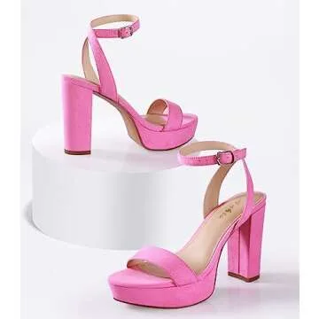 Ankis Platform Heels for Women 4 Inches Chunky Heels Sandals for Women Comfy Open Toe Block Heeled Sandals Nude White Silver Gold Black Ankle Strappy Heels for Women,Pink suede,Size 8.5
