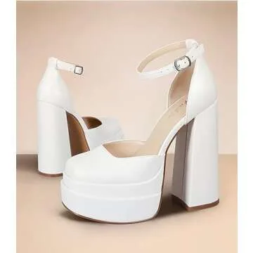 If you're seeking the perfect blend of style and comfort, look no further than the Ankis White Chunky Platform Heels. Designed for the modern woman, these stunning square toe chunky platform pumps encapsulate a unique chic essence while delivering comfort like none other. Featuring a remarkable 5.7-inch chunky block heel alongside a 2-inch base platform, these heels not only elevate your height but also provide a stable foundation to keep you moving gracefully...