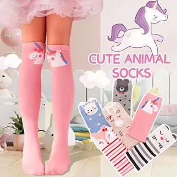 Show more Introducing the Anlisim Girls Knee High Socks, the perfect combination of fun, comfort, and style for your little ones! Designed specifically for children aged 3 to 12 years, these socks feature an adorable assortment of patterns including flamingos, unicorns, mermaids, cats, and foxes. With their vibrant colors and cute designs, these socks are not just a practical choice but also a delightful fashion statement, brightening up any outfit or occasion. Crafted from 85% ultra-soft cotton and 15% stretchy spandex, they ensure a snug yet comfortable fit, providing warmth while keeping little feet cozy and dry, making them a staple for the colder months.