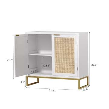 Show moreIntroducing the Anmytek Rattan Cabinet, a beautifully designed sideboard buffet storage cabinet that brings both elegance and functionality to any space. Its graceful white finish beautifully contrasts with the classic rattan panels, creating a chic boho vibe perfect for modern homes. With ample storage provided by a spacious countertop and two-tier shelving, this cabinet is ideal for organizing tableware, books, or decorative items. Made from durable MDF board, it guarantees longevity and resilience against scratches, maintaining its pristine look for years to come.