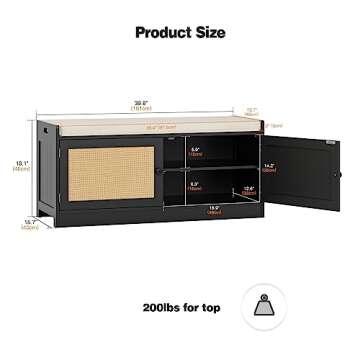 Anmytek Rattan Shoe Bench, Entryway Bench with Shoe Storage Wooden Shoe Rack Bench with Cushion Seat & Adjustable Shelves, Storage Bench for Entryway Black (39.8" W X 15.7" D X 18" H)