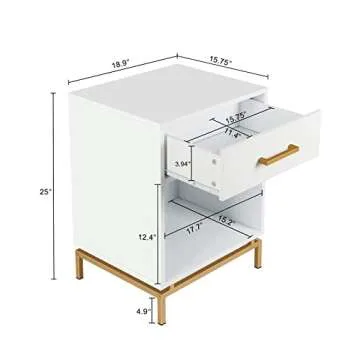 Introducing the Anmytek White Nightstand, a perfect blend of style and functionality designed to elevate any bedroom, dorm, or small space. This modern nightstand boasts a sleek white finish complemented by elegant gold metal legs, making it not only a practical storage solution but also a stylish accent for your décor. Its unique design offers ample storage, featuring a spacious drawer for personal items and an open shelf for easy access to your bedside essentials like lamps, alarm clocks, glasses, and...