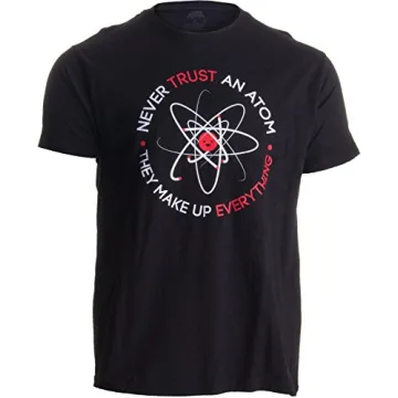 Unveil your love for science with the **Ann Arbor T-shirt Co. Unisex Adult Never Trust an Atom, They Make Up Everything** t-shirt, a delightful blend of humor and style designed for those who appreciate a witty twist on classic science themes. Proudly crafted in Ann Arbor, this vibrant t-shirt stands out with its eye-catching graphics, bringing a splash of color to your wardrobe. The shirt is thoughtfully produced, ensuring that each piece meets impeccable standards of quality and comfort. With a tagless...