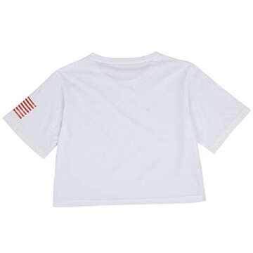 Show moreEmbrace your patriotic spirit with the Anna-Kaci Women's Letter Print Crop Top, a stylish and comfortable addition to your summer wardrobe. Crafted from 100% soft cotton, this casual T-shirt offers breathable fabric, making it perfect for warm weather wear. Featuring a vibrant USA American flag print combined with a trendy crop top design, this t-shirt not only allows you to show off your love for your country but also ensures you look fashionable at the same time. Designed with short sleeves, a drop shoulder fit, and a classic round neck, its relaxed style gives you the freedom to move while keeping you in style all day long.