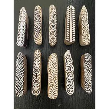AnNafi® Mehendi Print Blocks| Set of 10 Border Pattern Wooden Stamps