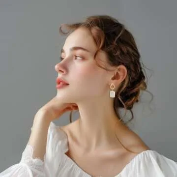 AnnChbpl Baroque pearl earrings for Women cultured white freshwater Pearl hoop square statement earrings 14K Gold plated Drop Dangle Jewelry bridal wedding earrings birthday gift for wife girlfriend