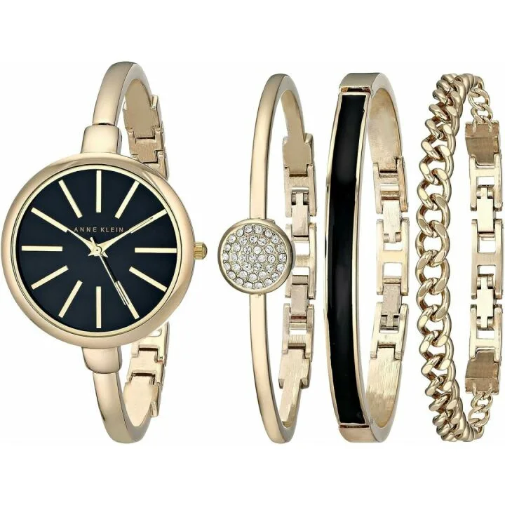 Show moreIntroducing the Anne Klein Women's Bangle Watch and Bracelet Set, AK/1470. This exquisite set features a beautifully crafted wristwatch along with complementing bangles, making it a perfect accessory for any stylish woman. Anne Klein, a reputable brand known for its timeless elegance and sophistication, brings you this set that combines both functionality and fashion. Each piece is meticulously designed to ensure durability and comfort, offering a lightweight feel that is perfect for all-day wear. The watch features easy-to-read numbers and a secure clasp, ensuring it stays in place throughout the day. The bracelets can be easily adjusted by removing links, making them a versatile fit for various wrist sizes. This set offers great value for the money, providing a high-end look without breaking the bank.