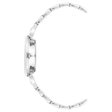Silver-tone watch featuring ribbed outer dial with applied Roman numeral indices and brushed inner dial with short hands and logo