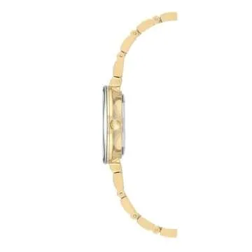 The gold-tone adjustable link bracelet adds to the watch's charm, featuring a jewelry clasp and extender for a customized fit. It's designed to be worn comfortably on any wrist while elevating any outfit from casual to chic. Additionally, this watch is water-resistant up to 100 feet (30M), allowing you to wear it confidently during everyday activities without worrying about splashes or sweat.
