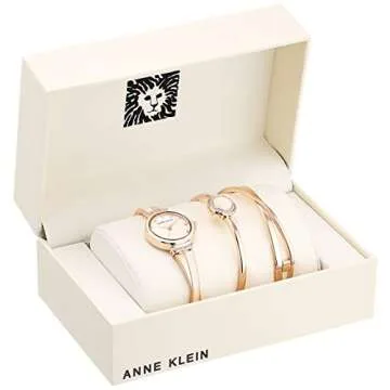 Show more Introducing the elegant Anne Klein Women's AK/3292LPST Premium Crystal Accented Rose Gold-Tone and Blush Pink Watch and Bangle Set, a stunning accessory that perfectly balances sophistication and style. This exquisite set features a watch adorned with premium crystals that enhance the beauty of its blush pink glossy dial. The rose gold-tone hands and crystal markers add a luxurious touch, making it the ideal timepiece for any occasion. Accompanying the watch are two beautifully designed bangles: one classic "X" shape and the other embellished with premium crystals and a blush pink enamel center, all crafted for versatility and elegance. With its adjustable links and secure jewelry clasp, this set not only looks fantastic but ensures a perfect fit for those with smaller wrist sizes. Whether you're dressing up for a special event or adding flair to your everyday outfit, this watch and bangle ensemble is your perfect go-to accessory.