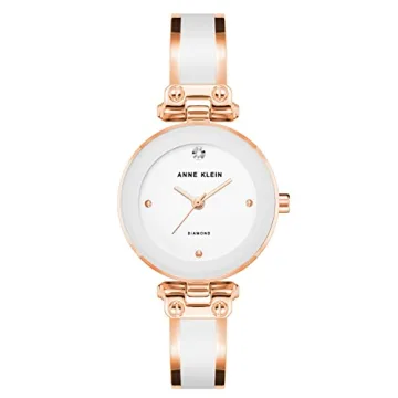 Show moreIntroducing a stunning accessory that seamlessly combines elegance and functionality – this exquisite watch from our acclaimed brand brings together a glossy white dial adorned with a genuine diamond at the 12 o'clock mark, rose gold-tone hands, and markers. Designed with a 34mm rose gold-tone case, this timepiece is not only aesthetically pleasing but also durable, featuring a robust mineral dial window that adds to its longevity. The innovative design showcases a rose gold-tone bangle with white enamel filling, perfectly aimed at those who appreciate sophistication. With adjustable end links, a jewelry clasp, and extender, it guarantees a comfortable fit for various wrist sizes.