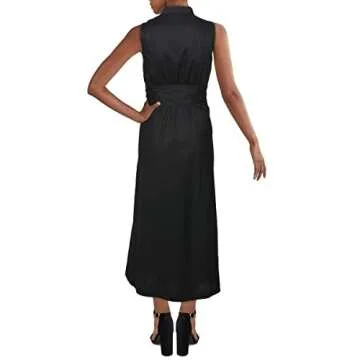 Stylish Anne Klein Womens Linen Midi Dress in Anne Black