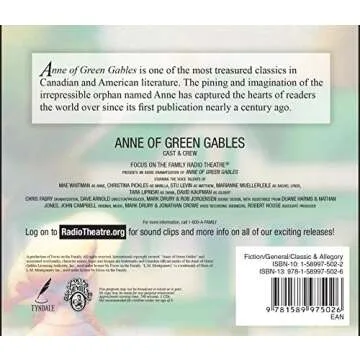 Immerse yourself in the enchanting world of Anne of Green Gables like never before with the exquisite audio adaptation by Focus on the Family Radio Theater. This captivating rendition brings L.M. Montgomery's beloved tale to life through stunning voice performances by a diverse cast of actors, creating an experience that captures the essence of the original story. From the charming mishaps of the spirited Anne Shirley to the serene beauty of Prince Edward Island, this audio...