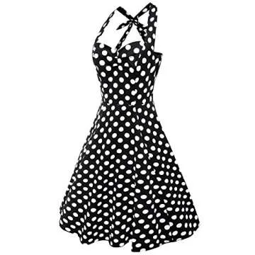 Anni Coco Women's Halter Polka Dots 1950s Vintage Swing Tea Dress - Small - 1st - Black & White Dots