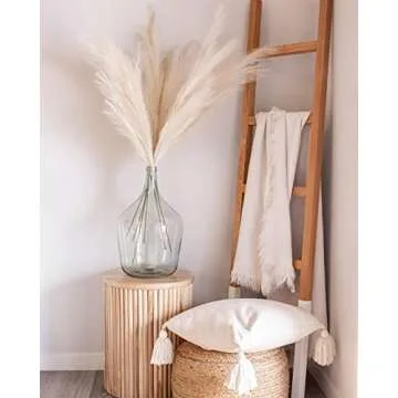 Show moreRevitalize your living space with the exquisite ANNIE&PANDA Faux Pampas Grass, a perfect decor piece that combines elegance and practicality. This set includes 3 large stems standing at 43 inches tall, offering a striking complement to your home decor. With their stunning cream and beige hues, these faux fluffy pampas grass stems instantly create a warm and inviting atmosphere, making them a versatile addition to any room.