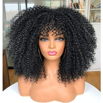 Annivia 16inch Afro Kinky Curly Wig with Bangs - Fluffy & Full