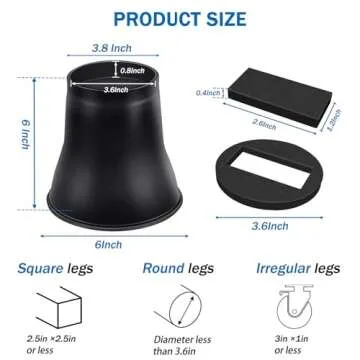 Show moreIntroducing the ANNKUT Bed Risers, your ultimate solution for elevating furniture while maximizing storage and improving accessibility! These heavy-duty round risers offer a substantial lifting height of 6 inches, making them ideal for various furniture pieces such as beds, desks, tables, and sofas. Each riser is constructed from durable materials with a 1-inch solid internal skeleton, ensuring they can support a remarkable maximum load capacity of 6000 lbs. Designed with practicality in mind, these risers feature a groove depth of 0.8 inches that securely grips furniture legs up to 3.6 inches wide. Say goodbye to the hassle of slipping cushions and hello to a stable and stylish solution!