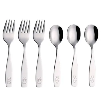 Show more Introducing the ANNOVA Stainless Steel 6 PCS Children Flatware / Cutlery Set, a delightful blend of functionality and style tailored specifically for your little ones! This charming set comprises three forks and three dinner spoons, expertly crafted to cater to tiny hands eager to emulate their adult counterparts while ensuring safety remains a top priority. Measuring an ideal 5.7 inches for forks and 5.5 inches for spoons, these utensils are perfectly sized to fit children's grip, making mealtime a fun and engaging experience.