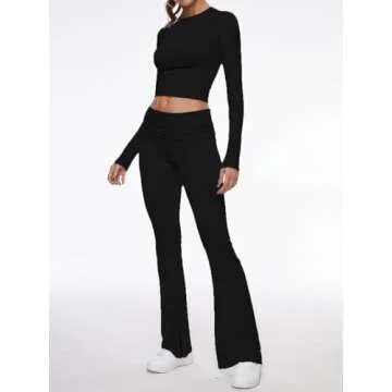 AnotherChill Women's 2 Piece Lounge Set: Long Sleeve Cropped Top & Flare Pants