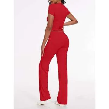 AnotherChill Women's 2 Piece Lounge Sets Straight Leg Pants Set Short Sleeve Crop T-shirt Casual Outfits Comfy Loungewear (Red, X-Small)