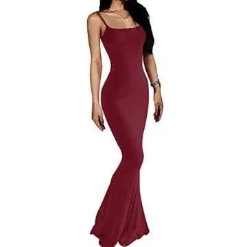 AnotherChill Women's Casual Lounge Slip Long Dress Sexy Sleeveless Backless Bodycon Maxi Dresses 2022 Summer Slim Elegant (Wine, Medium)