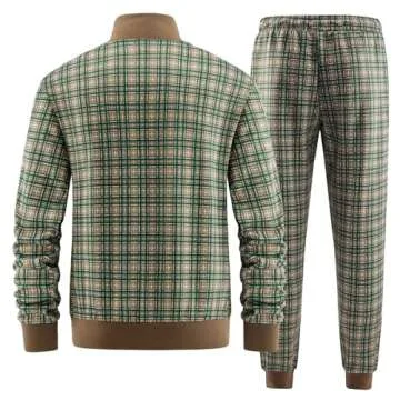 ANOTWENER Track Suits for Men Set 2 Piece Sweat Suits Plaid Tracksuit Men Outfits Sets Sweat Jackets Walking Suits Jogging Jogger Set Green JW-2601-XL