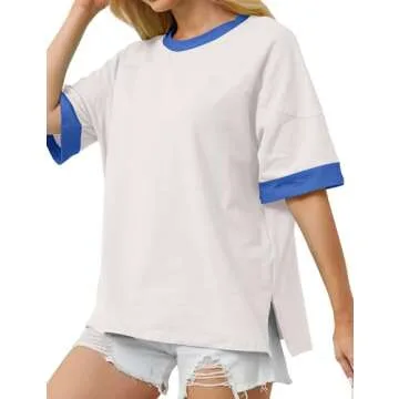 Show more Introducing the Anoumcy Color Block Oversized Cotton T-Shirt, a must-have addition to every woman and girl's wardrobe! Crafted from a luxurious blend of 95% cotton and 5% spandex, this tee offers high-quality softness that feels gentle against the skin, making it perfect for all-day wear. Designed with a chic color block patchwork style, it elevates your casual look effortlessly. The unique raised seaming, split hem, and oversized silhouette provide not just a relaxed fit but also a trendy edge that keeps you looking stylish. Whether you're heading out for a casual day or lounging at home, this versatile top will be your go-to choice this spring, summer, and autumn.