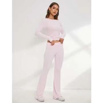Anoumcy Women 2 Pieces Outfits Long Sleeve Crewneck Crop Shirt Top and Flare Pants Matching Set Two Piece Yoga Lounge Sets
