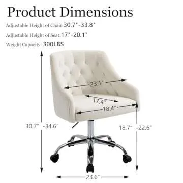 ANOUR Velvet Office Chairs,Modern Cute Home Office Desk Chairs with Wheels,Swivel Adjustable Task Armchairs,Vanity Chairs for Bedroom,Study Room,Office(White)