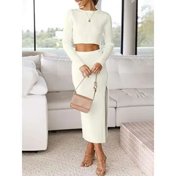 ANRABESS 2 Piece Outfits for Women Sexy Long Sleeve Crewneck Cropped Top and Ribbed Knitted Side Slit Midi Bodycon Dress Sweater Skirt Set 686mibai-M