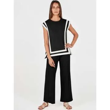 Show more Step into the world of relaxed elegance with the ANRABESS 2 Piece Sets for Women, your ultimate companion for summer vacations and beyond! Designed with comfort and style in mind, this chic lounge outfit features a beautifully crafted pullover top and comfy wide-leg pants, perfect for a variety of occasions. The pullover boasts a classic crewneck and short sleeves, complemented by a trendy split high-low hemline, ensuring you look effortlessly chic whether you’re relaxing at home or stepping out for a casual outing.