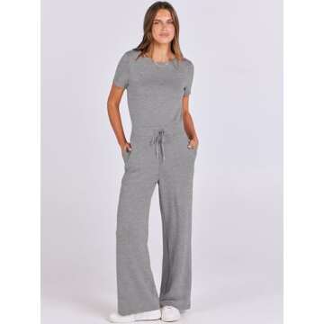ANRABESS Jumpsuits for Women Casual Summer 2024 Short Sleeve Loose Wide leg Pants Dressy Romper Jumpers One Piece Outfits Light Gray Medium