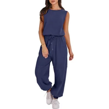 ANRABESS Jumpsuits for Women Casual Summer Sleeveless 2025 Romper One Piece Outfit Active Workout Lounge Jumpsuits Pockets Blue Large