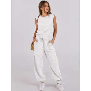 ANRABESS Jumpsuits for Women Casual Summer Sleeveless 2025 Romper One Piece Outfit Active Workout Lounge Jumpsuits Pockets Grey Medium