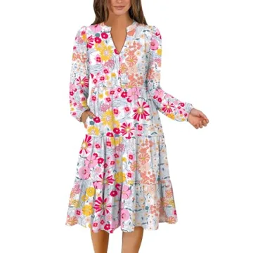 Show moreIntroducing the ANRABESS Long Sleeve Dress – a perfect fusion of style, comfort, and versatility, tailored for the modern woman. This exquisite dress boasts a V-neckline and a flowy, loose fit designed for maximum comfort while flattering your figure elegantly. Available in a stunning array of multicolour floral patterns, this dress is perfect for those looking to add some vibrancy to their wardrobe. Crafted with a blend of 35% Rayon, 60% Polyester, and 5% Elastane, the fabric strikes an ideal balance between stretch and softness, ensuring a comfortable all-day wear. The long sleeves and midi length make it a fantastic choice for spring and autumn, allowing you to transition effortlessly from casual outings to more formal occasions.