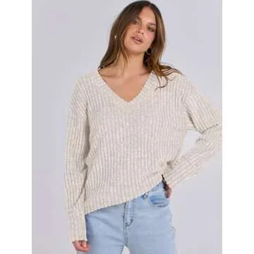 ANRABESS Long Sleeve Shirts for Women V Neck Casual Fall Tops Loose Fit Lightweight Sweaters Tunic Fashion 2024 Clothes Beige Large