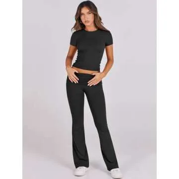 ANRABESS Lounge Sets for Women 2 piece Foldover Yoga Flare Leggings Pants Crop Tops Casual Y2K Outfits Matching Tracksuit Set Black X-Small