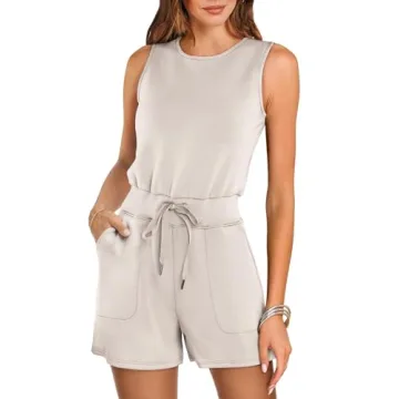 Show moreIntroducing the exquisite ANRABESS Women's Summer Romper, your ultimate fashion solution for this season’s hottest trends! This stylish romper is designed with a concern for both comfort and elegance, featuring a captivating blend of 45% rayon, 49% polyester, and 6% spandex. The fabric ensures a luxurious feel with excellent stretch, making it not only comfortable but also flattering for various body shapes. Its sleek crew neck and sleeveless design allows you to embrace the warm summer days with ease, while also providing an excellent base for layering with your favorite jackets or cardigans.