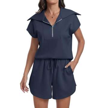 ANRABESS Two Piece Sets for Women Summer Half Zip Short Set Sweatsuit 2 Piece Outfits Sweat Lounge Sets Tracksuit navy blue Medium