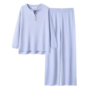 ANRABESS Women 2 Piece Outfits Oversized Loose Waffle Knit Sweater Set 2024 Fall Trendy Matching Lounge Sets Cozy Clothes sky blue Medium