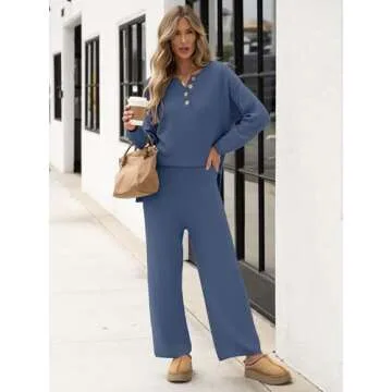 Show moreIntroducing the ANRABESS Women 2 Piece Outfits Oversized Loose Waffle Knit Sweater Set, your go-to ensemble for comfort and style this fall! Crafted with a cozy waffle-knit fabrication, this trendy matching lounge set is perfect for both relaxing at home and stepping out in style. With its relaxed fit, featuring a crew neck, button designs, and side slits, the oversized sweater offers versatile styling options, while the high-rise, wide-leg pants ensure you feel both chic and comfortable at any occasion. Available in sizes ranging from XS to XXL, you can easily choose your normal size to achieve the perfect fit!