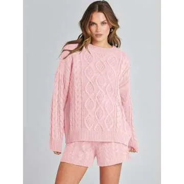 Show moreIntroducing the ANRABESS Women 2 Piece Outfits Sweater Lounge Loungewear Sets, an exquisite blend of comfort and style that’s perfect for the crisp days of fall. This cozy-cute set boasts a beautifully crafted cable knit sweater paired with high waist shorts, designed to offer a relaxed and oversized fit. Made from 100% acrylic, this outfit feels heavenly against your skin while ensuring you stay warm during those chilly seasons. The deep purple hue is not only trendy but quintessentially autumnal, making it a striking addition to your wardrobe!