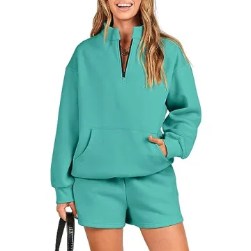 ANRABESS Women 2 Piece Outfits Sweatshirt Shorts Sets 2024 Oversized Casual Lounge Sweat Set Sweatsuit Workout Tracksuit Lake Green Large