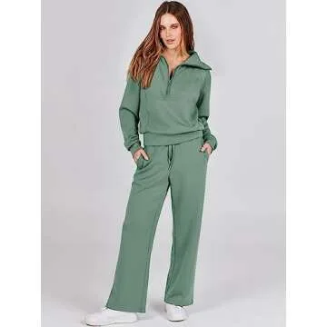 ANRABESS Women 2 Piece Outfits Sweatsuit Oversized Sweatshirt Sweatpants Tracksuit Sweat Lounge Matching Set 2025 Fall Trendy Pea Green Small