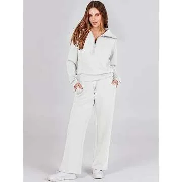 Show more Introducing the Anrabess Sweatsuit Set, a versatile two-piece tracksuit designed for the modern individual who values both comfort and style. This set features a half zip long sleeve oversized sweatshirt paired with high waist drawstring wide leg sweatpants, all crafted from a high-quality blend of 50% rayon, 45% polyester, and 5% spandex. The fabric is slightly stretchy, providing the perfect balance of medium thickness and softness for all-day wear.