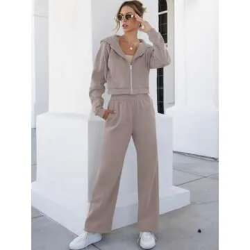 Show more Step into ultimate comfort with the ANRABESS Women 2 Piece Outfits Sweatsuit, designed to elevate your casual wardrobe. This chic and trendy two-piece sweatsuit set effortlessly fuses functionality with stylish aesthetics. Crafted from luxuriously soft and thick fabric, each set includes a cozy zip-up crop hoodie and matching sweatpants, making it the perfect ensemble for women who appreciate both warmth and style. The hoodie features a practical kangaroo pocket, perfect for keeping your essentials close, while the drawstring oversized sweatpants ensure a flawless fit. Whether you're lounging at home, heading out for errands, or engaging in light exercises, this versatile piece is your go-to companion.