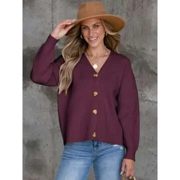 ANRABESS Women Cardigan Sweaters 2024 Fall Oversized Button Open Front Knit Lightweight Cardigans Fall Outfits Outerwear Burgundy Small