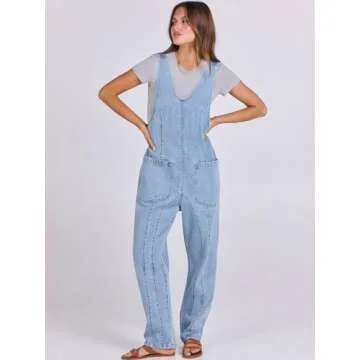 Features - Women's denim overalls, adjustable straps, loose, v neck, pockets, sleeveless.This women's jumpsuit perfect for daily wear, vacation, travel.