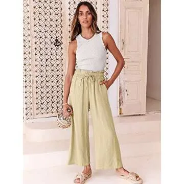 Show more Experience effortless elegance with our women's summer linen palazzo pants, expertly crafted for comfort and style. Made from a premium blend of 30% linen and 70% rayon, these pants are designed to be lightweight and breathable, making them the perfect choice for warm weather. The high-waisted, wide-leg design offers a flattering silhouette for all body types, ensuring you feel confident and chic with every wear.