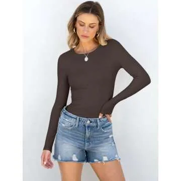 ANRABESS Women Long Sleeve Crewneck Rib Knit Slim Fit Shirts Basic Tee Tops 2025 Casual T-Shirt Going Out Workout Outfits Brown Medium